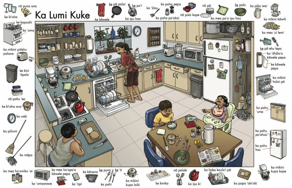 - Aia koʻu hale ma kēia alanui - My house is on this street (koʻu hale=my house, kēia alanui=this street)